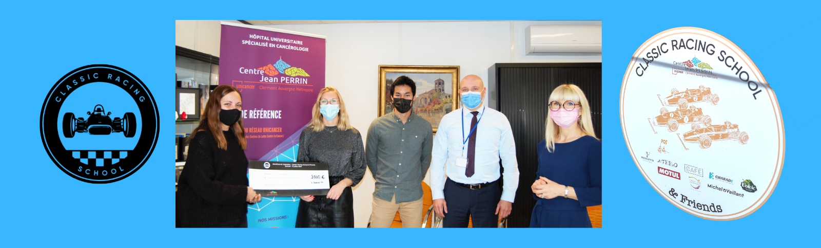 Ce mardi 7 décembre 2021, le Président du Classic Racing School, Julien CHAFFARD, remettait un chèque au profit de la recherche contre le cancer au Centre Jean PERRIN.