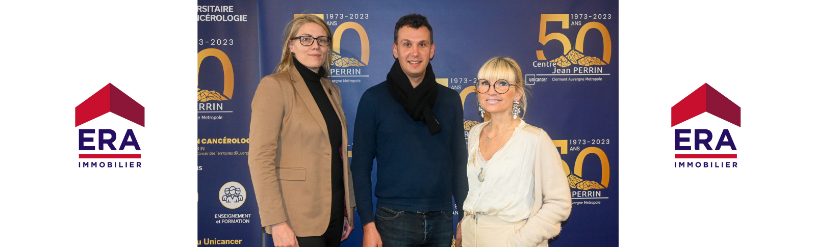 Mercredi 20 décembre 2023, Pierre PRUGNARD et Céline MALSKI-VERNIER, Directeurs des agences Era Immobilier Montferrand République et Lafayette se sont rendus au Centre Jean PERRIN afin de remettre à Sandrine ALBARET, Directrice Communication et Mécénat, un chèque correspondant au montant récolté lors de cette action.