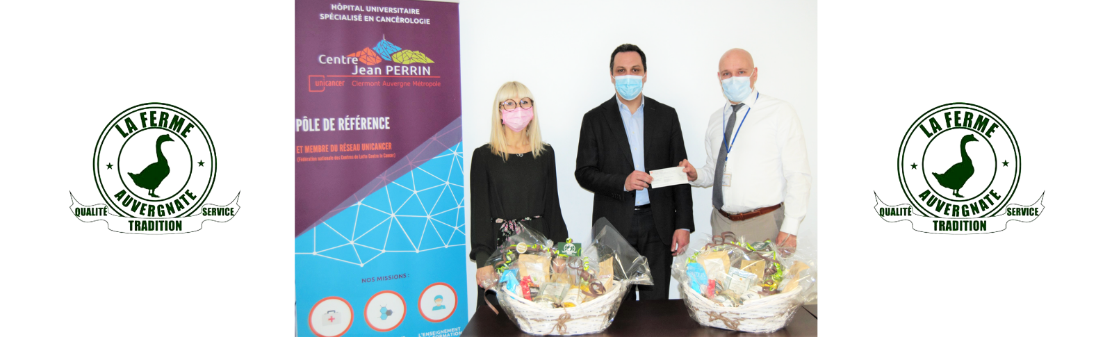 Vendredi 3 décembre 2021, Jean-Philippe PERRET, Président de la Ferme Auvergnate, est venu remettre un chèque correspondant aux points fidélité convertis en euros.