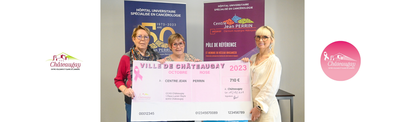 Lundi 18 décembre 2023, Annie LEVET, 1ère Adjointe en charge des Affaires Sociales, et Christine DE FARIA, Adjointe à la Communication, sont venues remettre à Sandrine ALBARET, Directrice Communication et Mécénat du Centre Jean PERRIN, les sommes récoltées lors de la Marche Rose.