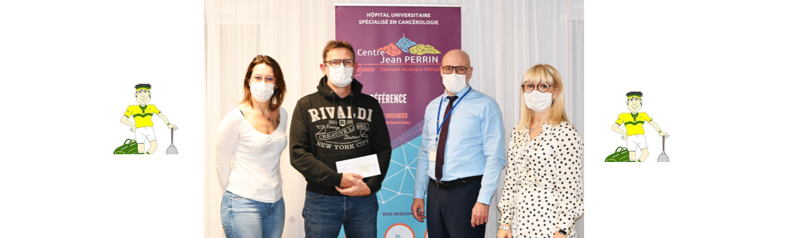 Antoine Morin, Président du Cellule Tennis Club, et Marina PINON, Adhérente du Club de Tennis et Préparatrice en Pharmacie Hospitalière, sont venus remettre à Raphaël ZINT, Directeur Général Adjoint, et Sandrine ALBARET, Directrice Communication et Mécénat, un chèque correspondant aux bénéfices récoltés lors du marathon tennis organisée à l’occasion d’Octobre Rose.