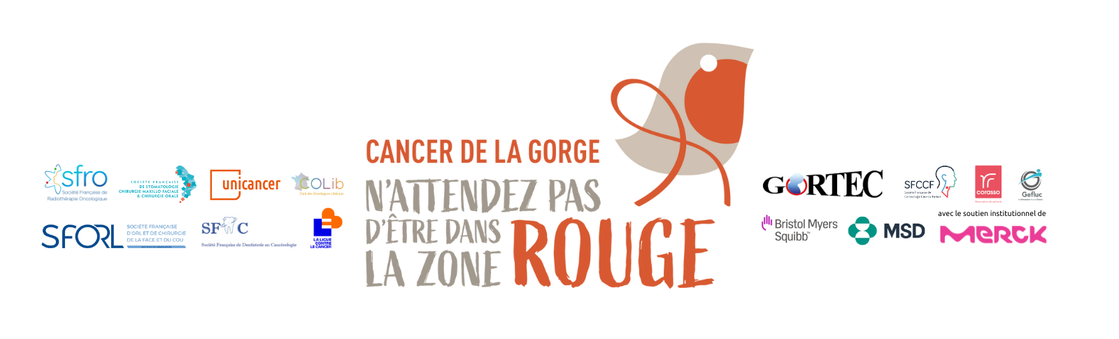 Pour donner de la visibilité médiatique et faire connaître les cancers de la gorge et les moyens d’y faire face, la SFCCF et la SFORL lancent la deuxième édition de la campagne Rouge-Gorge. Cette année encore, l’initiative est soutenue par les laboratoires pharmaceutiques MSD, Merck et BMS, ainsi que par l’association de patients Corasso et différents partenaires logistiques et financiers (La Ligue contre le cancer, Unicancer, et d’autres sociétés savantes (SFRO, Gortec, Colib, SFCMF, SFCD, etc.).