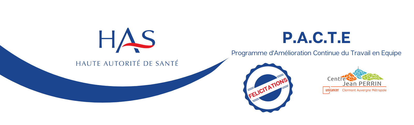 Engagé dans la démarche PACTE (Programme d’Amélioration Continue du Travail en Equipe), l’unité de Réanimation du Centre Jean PERRIN s’est vu remettre une attestation avec mention Félicitation par Mme Yasmine SAMI de la Haute Autorité de Santé.
