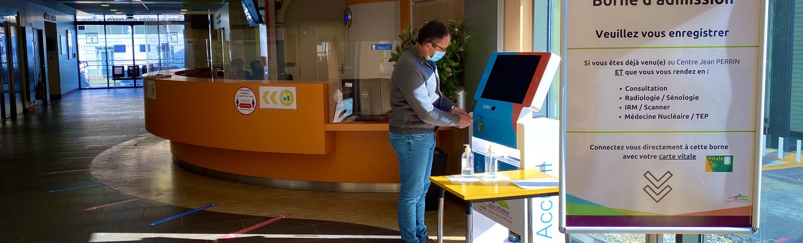 Nous vous prions d’utiliser la borne d’admission, située dans le hall principal, à votre arrivée, sans passer par le bureau des entrées. Pour vous enregistrer sur la borne d’admission, vous devez utiliser votre carte vitale.