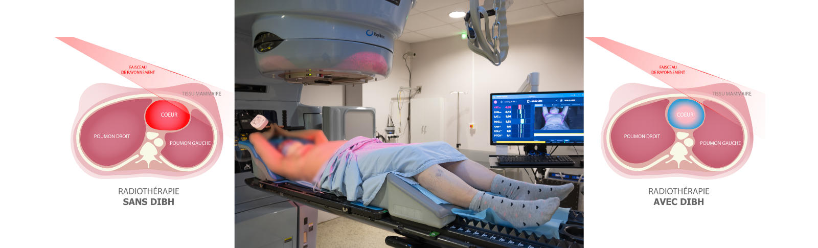 Afin de protéger le cœur des rayons lors du traitement, le département de radiothérapie du Centre Jean PERRIN utilise une nouvelle technique appelée « DIBH » (Deep Inspiration Breath Holding) ou « Inspiration Profonde Bloquée ». La radiothérapie est délivrée en inspiration bloquée pour que le cœur soit éloigné au maximum du sein traité. Lorsque la patiente remplit ses poumons d'air et bloque sa respiration, le volume des poumons augmente et le cœur s'écarte de la paroi thoracique.