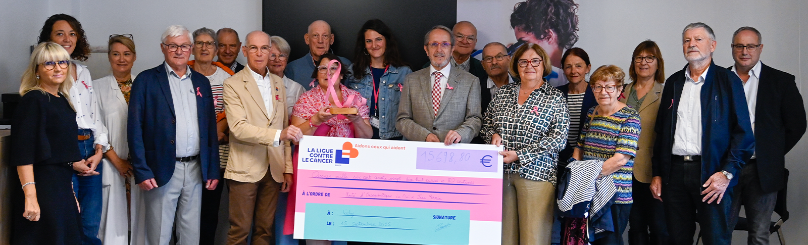 Mme Christiane Pascale GUILLAMBERT, M. Alexandre DI CIOCCIO, Président Auvergne Mutuale, tous les Bénévoles du groupes Octobre Rose Lusigny 03 et tous les partenaires associatifs ont récolté 15 698,80€ cette année, grâce à leurs multiples actions. Cette somme a été reversée au Comité de la Ligue Contre le Cancer Allier 03 .