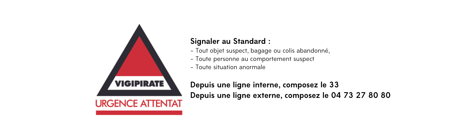 Pendant cette période, nous demandons à l'ensemble du personnel d'avoir une vigilance particumière sur les objets ou comportements suspects.