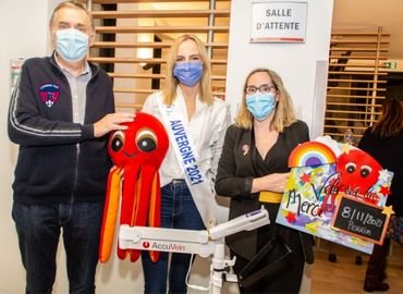 L’association « Voler avec lui », soutenue par le Clermont Foot 63 et Miss Auvergne 2021 a fait don d’un AccuVein afin de faciliter l’insertion des cathéters